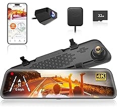 WOLFBOX G840S 12" 4K Mirror Dash Cam Backup Camera, 5.8GHz WiFi Smart Rearview Mirror for Cars & Trucks, Front and Rear View Dual Cameras, Night Vision, Parking Assistance, Included 32GB Card & GPS