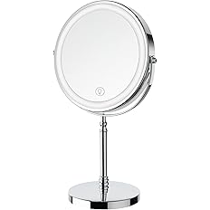 Lighted Makeup Mirror, 3000 mAh Rechargeable Double Sided Magnifying Vanity Mirror with 3 Colors, 1x/10x, 360° Rotation , Brightness Adjustable Magnification Cosmetic Light up Mirror