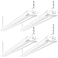hykolity 4 Pack Linkable LED Shop Light, 4FT 42W [250W Equivalent], 4400lm, 5000K Daylight, with Plug, Utility Light Fixture, Hanging or Surface Mount, White