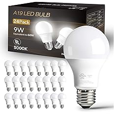 dalattin 24 Pack LED Bulbs Daylight White 5000K, 60 Watt Equivalent A19 Standard Bulbs, E26 Base, 800 LM, Efficient 9W Energy Saving, Non-Dimmable, 80+ CRI, 120V, UL Listed, for Living Room, Office