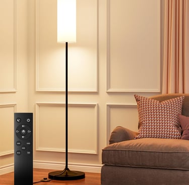 luckystyle Dimmable Floor Standing Tall Lamp, 12W Led Bulb with Lampshade, Foot Switch, Remote Custom Color Temperature Pole for Bedroom, Office, Kids & Living Room, Black