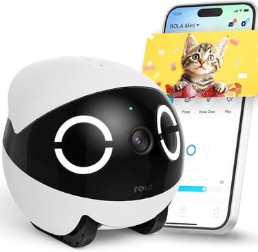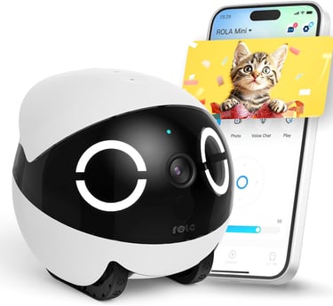 Enabot EBO 2K Pet Camera Robot ROLA Mini FamilyBot: Movable Pet Camera Indoor with Phone App, Battery-Powered, One-Touch Call, 2-Way Talk, Night Vision, Motion Detection, Video Recording