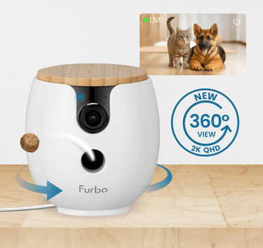 Furbo Mini 360° [New] 2K QHD Pet Camera: Dog & Cat Rotating Treat Dispenser w/Phone App, Smart Indoor Cam with 2-Way Speaker & Night Vision. No Subscription Needed. Standard See, Talk, & Toss Features