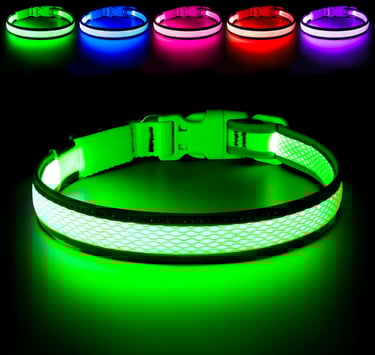 Flashseen LED Dog Collar, Light Up Dog Collar Lights USB Rechargeable, Adjustable Comfortable Soft Mesh Safety Collar for Small, Medium, Large Dogs