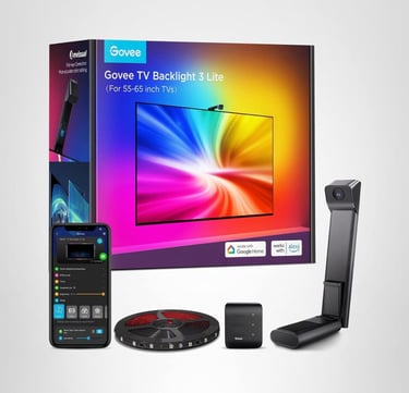 Govee TV Backlight 3 Lite with Fish-Eye Correction Function Sync to 55-65 Inch TVs, 11.8ft RGBICW Wi-Fi LED Strip Lights with Camera, 4 Colors in 1 Lamp Bead, Voice and APP Control, Adapter included
