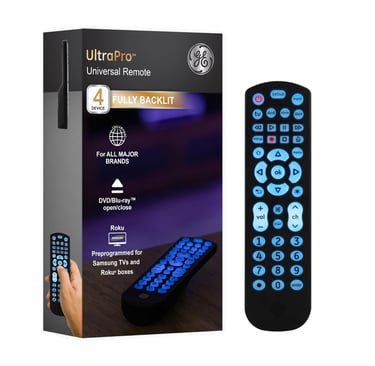 GE Backlit Universal Remote Control for Samsung, Vizio, LG, Sony, Sharp, Roku, Apple TV, RCA, Panasonic, Smart TV, Streaming Players, Blu-Ray, DVD, 4-Device, Black